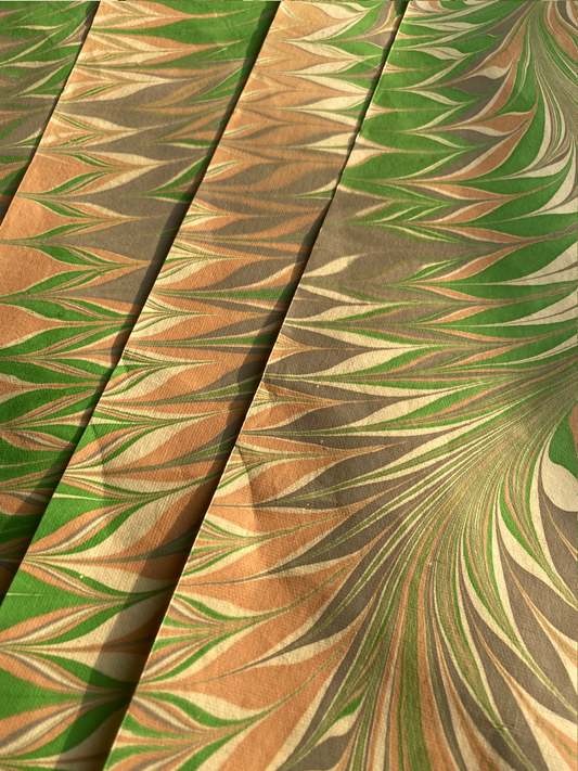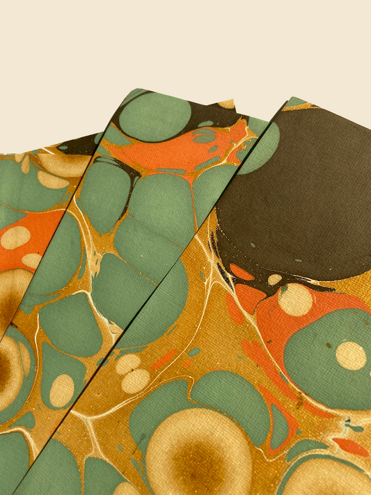 Green, Gold & Red Marbled Paper