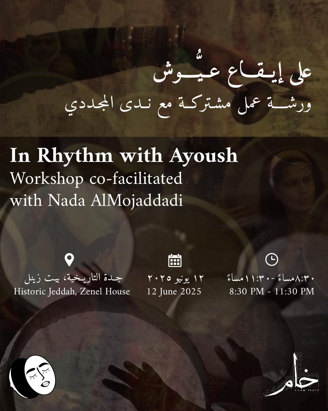 Guided by rhythm master Ayoush AlQamar, we invite you on a collective journey to rediscover this deep, intuitive connection. Through attentive listening, movement, and shared presence, we explore rhythm as a path to harmony, both with each other and within ourselves.