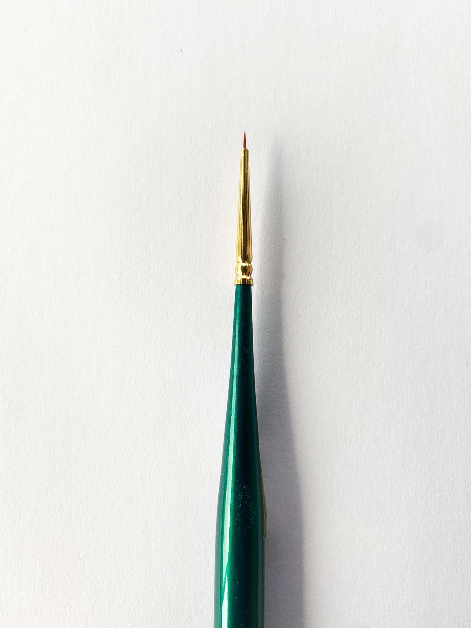 Fashioned on a beautiful green 'thick' handle which is comfortable to hold, this little gem will be a favorite in your brush collection. This micro synthetic brush is ideal for miniaturists whereby a precise 'spot' or mark is needed and detail required.